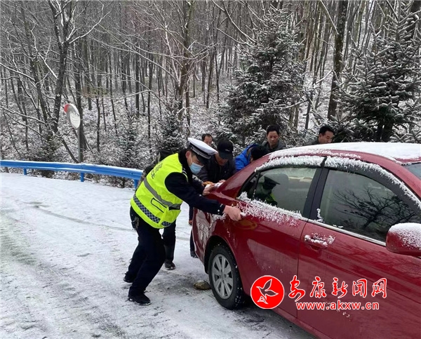 救援期間,執勤民警、輔警冒著嚴寒,克服困難,一邊救援一邊引導過往車輛及時避險、安全行駛,有效防止了二次事故的發生。在疏通出安全道路后,又與公路段養護工作人員向被困車輛鋪灑防滑沙,歷時4個多小時的救援,被困擁堵車輛全部救援成功。臨行前,車輛駕駛員對大家的及時援助一再表示由衷的感謝,執勤民警再次叮囑駕駛員一定要減速慢行,謹慎駕駛,加強道路交通安全防范意識,面對雨雪惡劣天氣,一定要提前備好防滑鏈,切勿存在僥幸心理。