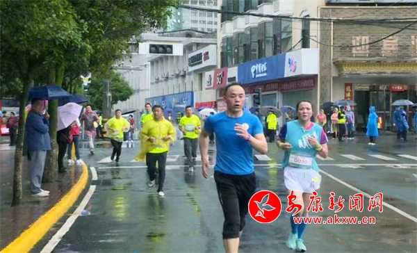 上午9:00,伴隨著清脆的發(fā)令槍響,參賽選手們?nèi)珉x弦之箭,沿著賽道一路前行,在大雨中賽跑。比賽中,選手一邊享受酣暢淋漓的樂趣,一邊領(lǐng)略寧陜縣城的自然風(fēng)光和朝氣蓬勃的發(fā)展新貌。漫天的大雨也沒能澆滅選手們參賽的激情,26分37秒,男子青年組號(hào)A121號(hào),第一個(gè)到達(dá)終點(diǎn)。隨后,各參賽選手也陸續(xù)完成比賽。