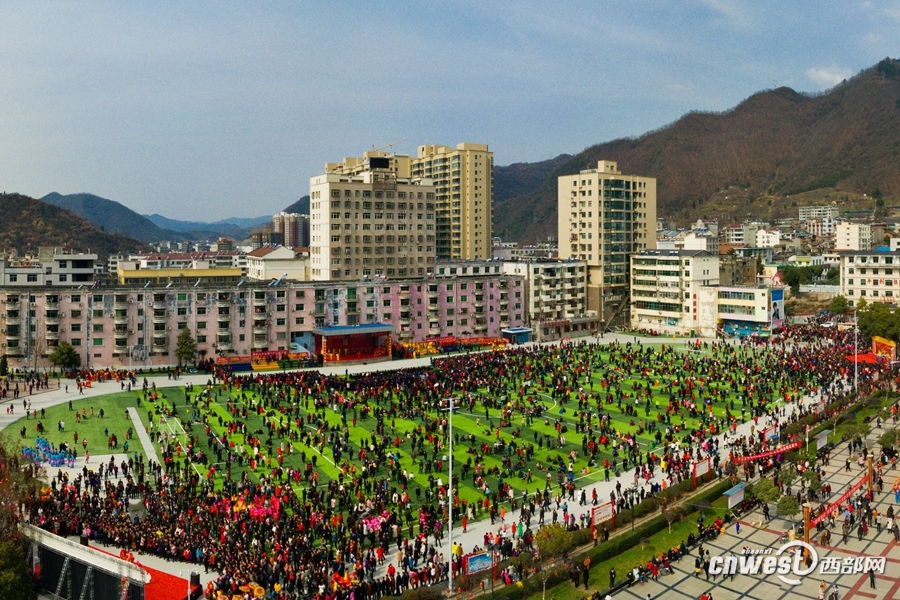 群眾從四面八方涌向平利縣文化廣場(chǎng)。 柳偉 攝