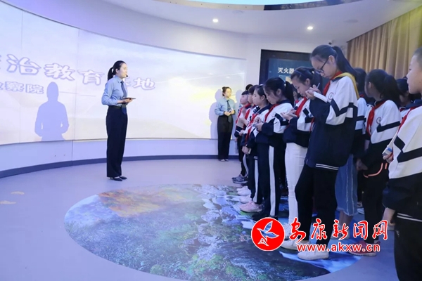 小學(xué)生們?cè)谥v解檢察官引導(dǎo)下,有序參觀了基地法治天空、陽(yáng)光之路、墮落之殤、安全之旅、邁向通途五大功能展區(qū),認(rèn)真觀看了《“未”愛(ài)護(hù)航,守護(hù)成長(zhǎng)》微視頻以及青少年犯罪微電影《殤》,明白了什么可為,什么不可為。學(xué)生們?cè)诼暪怆娍亍⒏呖萍肌⒍嗝襟w、故事性、趣味性、互動(dòng)式的環(huán)境氛圍中上了一堂生動(dòng)的法治教育課。