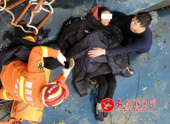 這時,消防大隊帶著工具也趕到了現(xiàn)場,在等待消防大隊布置軟梯的時間里,李強和何釗顧不上自己全身抽搐,又冷又疼的身體,第一時間將老人放平,把自己脫下的棉服緊緊裹在老人身上,抱著老人給她取暖,他們不斷呼喊老人,用按壓的方式對老人進行急救。