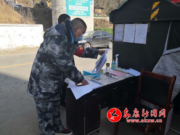 西壩村現役軍人陳玉沈在大疫面前,立書請戰,成為了一名疫情防控志愿者,被分派到平利西河鎮段家河監測勸返點,負責值班值守,監測勸返。
