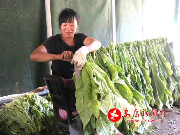 在龍洞河村廖明清的烤煙房外,65歲的鄧明珠正熟練的挑揀、捆綁,幾分鐘就把一桿煙葉綁好了。鄧大娘一邊干活一邊笑著說(shuō):“通過(guò)扶貧搬遷搬到了山下,兒女在外務(wù)工,乘著現(xiàn)在我還能干,給兒女減輕一些負(fù)擔(dān),我已在這里干了幾個(gè)月了,每天100元的工資,土地也流轉(zhuǎn)給合作社,兩項(xiàng)加起來(lái)1萬(wàn)多塊錢(qián)還是掙得到的。