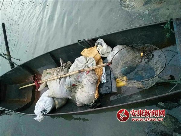 當日下午16:00時許,石泉縣水利局接舉報稱石泉水庫大壩下有人非法電魚消息后,當即指派漁政執法人員前往查處。經現場查看,水庫大壩下卻有一疑似捕魚船只在壩下江面游弋,行跡十分可疑。由于大壩下游山體險峻,執法人員只好采取一邊分組盯守,一邊通知相關人員準備橡皮伐及攀巖工具。于此同時,城關派出所民警也聞訊出警進行現場警戒,并共同商議行動方案。執法人員決定冒險分兩組分別向非法捕撈嫌疑人藏匿地點靠攏。一組劃橡皮伐由漢江左岸向壩基右岸靠攏,一組由右岸峭壁攀巖而下,由于灘險流急,崖高壁陡,兩組人員行進都十分困難且相當危險,稍有不慎就有墜河跌崖的危險。當執法人員抵達右岸壩基時,非法捕撈嫌疑人早已利用熟悉地形和水性好的優勢先將船只灌水沉入江中后,又將漁具藏匿后選擇隱蔽路線逃之夭夭。經執法人員進行近一個小時的仔細搜索,終于在壩基右岸一巖壁下十分隱蔽的水灘里發現了沉入水下的船只。由于船只藏匿地地勢險要,且水下水情不明,執法人員幾經試探后,才小心謹慎的潛入水下將沉船拖出水面。現場共收繳電瓶等非法捕撈漁具10余件,漁獲物40余斤。