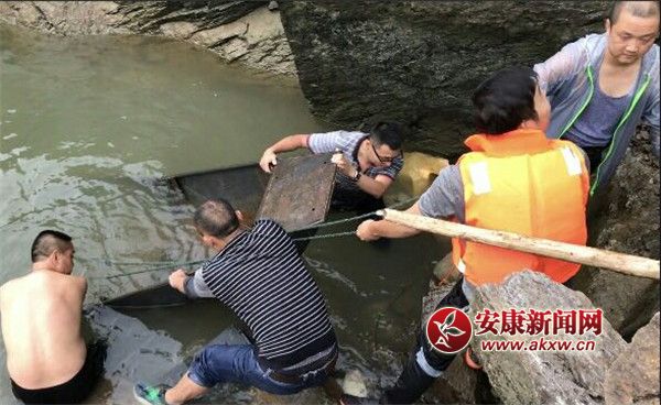 安康新聞網訊(通訊員 周傳水 方松)9月19日傍晚,一非法電魚者隱蔽在石泉電站庫區下游捕魚,被執法人員發現后將捕魚船只沉入江中后逃離現場。執法人員只好潛水將非法船只打撈上岸。
