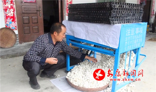 “這個機器真不錯,省事省勞力,明年我也用起來。我家里2個人,養了2張蠶,在摘繭的時候忙的不得了,摘繭手腳慢了就看到新鮮蠶繭變老、出蛾子,心痛的很啊!”蠶農徐世前說道。