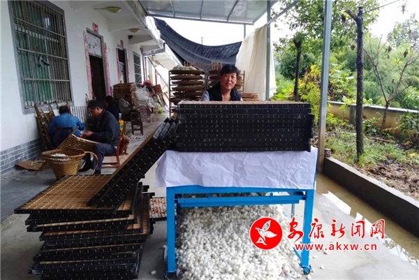 “通過幾季養蠶比較,用快速取繭機取100個塑框木質方格蔟上的蠶繭也就40多分鐘,而100個紙質方格簇10來個人摘繭最快也要一天半,對比起來快速取繭機太省時省力高效了。”蔡明勇對快速取繭機很滿意,他打算來年將家中的方格簇進行大改良,全部用上塑框木質方格蔟。