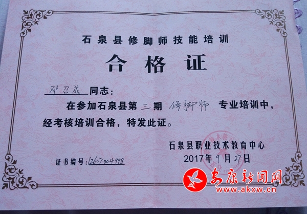 “多謝當(dāng)初你們讓我去參加修腳培訓(xùn),學(xué)得一技之長,在外面找到了工作,也感謝黨的好政策,當(dāng)初參加培訓(xùn)每天包吃包住還補(bǔ)助交通費。我一定好好干,給村里的貧困戶帶個好頭。”這次回村,鄧召成還專門來到村委會向包戶干部表示感謝。