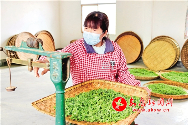 熨斗鎮(zhèn)先聯(lián)村依托1300多畝茶園,還成立了商貿(mào)公司,堅持以企業(yè)為龍頭,帶動廣大農(nóng)戶形成了從茶樹種植、茶葉加工、茶葉銷售到茶園觀光旅游為一體的產(chǎn)業(yè)鏈。“我們依托這個茶園基地,通過茶葉加工技術提升、品牌打造、電商銷售等渠道把靈雀山茶葉不斷推向市場,再依托商貿(mào)企業(yè)把產(chǎn)業(yè)融合發(fā)展聯(lián)動帶起來,讓群眾持續(xù)穩(wěn)定增收!”熨斗鎮(zhèn)先聯(lián)村駐村第一書記邱衛(wèi)東說。