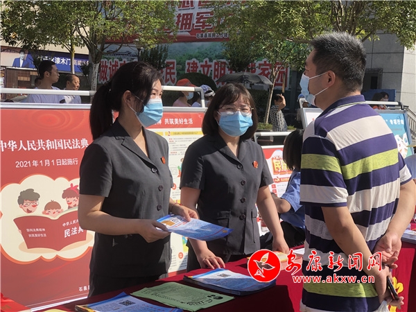本次活動主題為“典”亮生活 法潤石泉,以增強廣大群眾對《民法典》的認識為目的,推動《民法典》走到群眾身邊,走進群眾生活。通過懸掛橫幅、擺放宣傳展板、發放宣傳手冊、現場提供法律咨詢等形式向群眾進行普法宣傳。