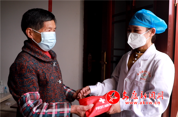 “袁阿姨,這個(gè)是免費(fèi)的防疫物品,有什么問題隨時(shí)和我聯(lián)系。”石泉縣城關(guān)鎮(zhèn)黃荊壩村,71歲的袁秀梅常年獨(dú)居,村醫(yī)劉玉琴為其發(fā)放“防疫健康包”,詳細(xì)詢問袁秀梅近期健康狀況,講解個(gè)人防護(hù)和日常身體健康監(jiān)測(cè)相關(guān)知識(shí)。收到健康包的袁秀梅很開心:“送的都是我們需要的,有你們?cè)冢姨貏e安心。”