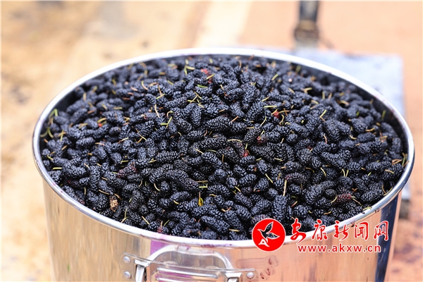5月18日,石泉縣池河鎮明星村桑果采摘園門口,桑農們正在將新鮮采摘的桑葚進行統一稱重售賣。據了解,每日可采摘桑葚1000余斤,每斤售價3元,有效增加了蠶農收入,助推鄉村振興。 (圖文/汪龍濤 劉丹)TkN安康新聞網