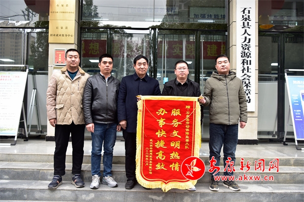 本網訊(通訊員 胡俊)2月18日,春節后上班第一天,武漢某勞務公司負責人及工人代表專程趕到石泉縣,將一面印有“服務文明熱情 辦事快捷高效”的錦旗送到該縣人社局勞動保障監察大隊,對工作人員為民維權、積極保障勞動者權益的辛勤付出表示由衷的感謝和敬意。Q7w安康新聞網