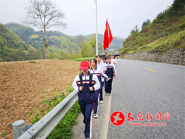 活動(dòng)中,該校師生沿著公路有序行進(jìn),途中相互鼓勵(lì)打氣,順手撿走路邊垃圾,用實(shí)際行動(dòng)保護(hù)家鄉(xiāng)的綠水青山,彰顯中學(xué)生良好的精神風(fēng)貌。經(jīng)過2個(gè)小時(shí)的徒步行走,師生順利到達(dá)終點(diǎn)喜河鎮(zhèn)紅色文化廣場(chǎng)。