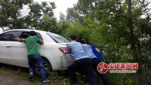 安康新聞網訊(通訊員 李羽)近日,旬陽麻坪派出所民警下村辦案時,發現現一輛私家車倒車時后駛出道沿,車輛橫擔在高坎邊,十分危險。民警仔細觀察后,找來墊石,齊心將車輛推了出來,及時化解了危險。