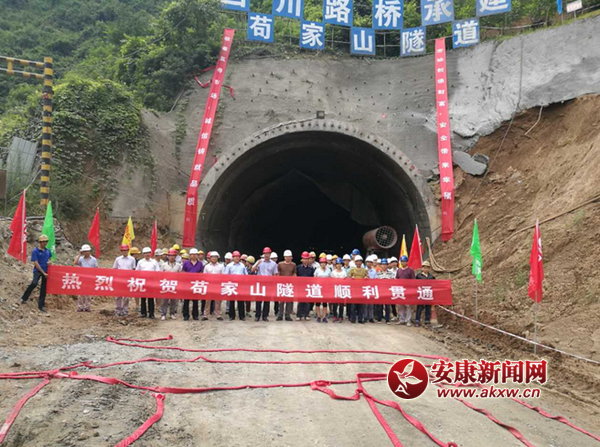 安康新聞網訊(通訊員 宋德憲 吳丹 李陽龍)6月21日10時左右,S102旬陽至小河公路改建工程傳來又一振奮人心的消息,四川路橋XXLJ03合同段項目部承建的茍家山隧道順利貫通了!這是繼楸樹坪隧道后貫通的又一座公路隧道。