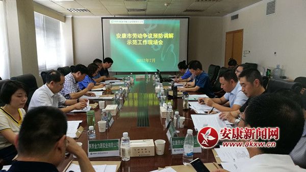 安康新聞網(wǎng)訊(通訊員 羅斌 張兆群)7月18日全市勞動爭議預防調解示范工作現(xiàn)場會在我縣召開。市人社局黨組成員、副局長、市技工學校校長周育論出席會議并作重要講話。市人社局仲裁科長、業(yè)務人員、旬陽、漢陰、平利、石泉四縣區(qū)人社局分管領導、仲裁院長、五個企業(yè)代表共40余人參加會議