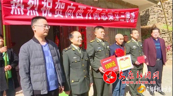 喜慶的鑼鼓聲中,旬陽縣退役軍人事務局為白柳鎮西溝河村向明剛佩戴大紅花,并送去了喜報、慰問金以及親切的問候。向明剛的兒子向西力2013年從遼寧大學入伍,服役于武警四川總隊某中隊,在參加武警四川總隊比武獲得個人第一名,并授予三等功。
