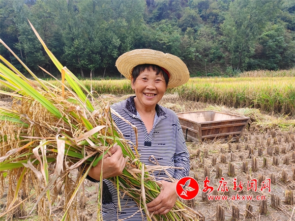 仙河鎮還有少部分像陳尚友這樣的傳統收割農戶,受地形條件限制,很多稻田收割機無法到達,傳統收割方式保留至今,也成為金黃色稻田間的一道風景線。