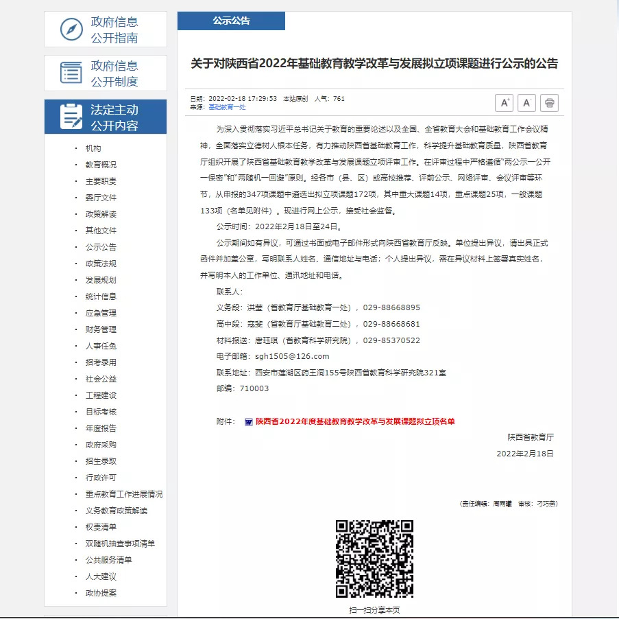 為了深入貫徹落實習近平總書記關于教育的重要論述以及全國、全省教育大會和基礎教育工作會議精神,全面落實立德樹人根本任務,大力推動陜西省基礎教育工作,科學提升基礎教育質量,陜西省教育廳組織此次課題的評審和立項工作。本次立項課題172項,是從申報的347項課題中遴選而出的。