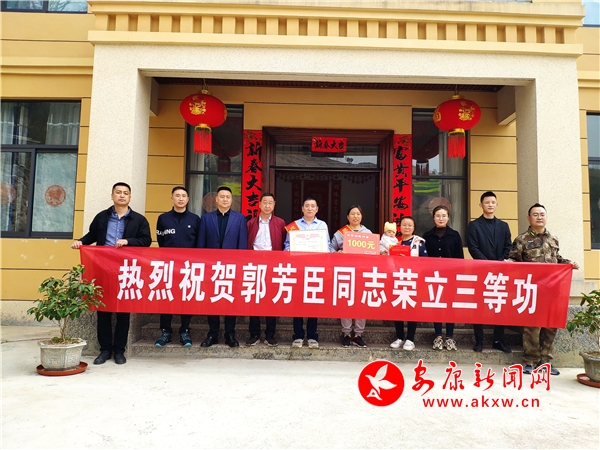 本網訊(通訊員 馬安奎)3月14日,旬陽市退役軍人事務局和關口鎮人民政府工作人員一起前往泥溝村一組現役軍人郭芳臣家中,為其家屬送上了“三等功”喜報及慰問金。