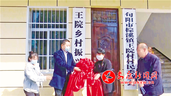 旬陽(yáng)市委書(shū)記陳紅星(左二)、安康市委黨校常務(wù)副校長(zhǎng)屈曉紅為王院鄉(xiāng)村振興學(xué)堂揭牌