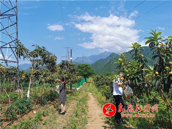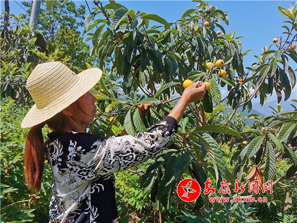 果農們正忙著采摘、包裝、發運,臉上寫滿了豐收的喜悅。果農楊作芳正在地里采摘枇杷,只見她左手挎著果籃,右手抓住枝丫,熟練地將一顆顆枇杷摘下來,看到品相特別好的,她就拿起來展示一下,“你看這幾顆又大又圓,熟透了,絕對特別甜。”她從2016年開始流轉自己的土地給合作社種植枇杷,總共種了16畝。“今年的枇杷剛剛成熟,掛果比去年還多。我摘一天給我發100元工資,枇杷一斤可以賣到10塊錢,等枇杷都賣了,我能穩穩賺到4萬多呢。”剛從地里采摘完枇杷正在裝箱的楊作芳談及枇杷給她帶來的收益樂開了花。在枇杷園內除了果農外,也引得不少游人前來觀光采摘。