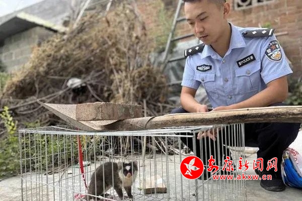 當日中午,呂河派出所接到群眾報警稱,“在其家中鐵籠里關了一只像果子貍的野生動物,請求幫助。”接警后,值班民警迅速帶隊前往處置。到達現場后,民警看到了這只“不速之客”,是一只灰褐色皮毛的小動物,臉似狐,嘴似豬,花白面,時不時上躥下跳,身體狀況還不錯。民警經過仔細比對和觀察,并經林業部門工作人員確認,發現該動物并非果子貍,而是一只鼬獾,屬于國家三級保護動物。