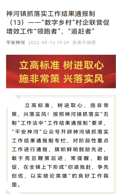 一套管理制度,持續(xù)鞏固深化作風(fēng)建設(shè)。為了持續(xù)鞏固深化作風(fēng)建設(shè),鎮(zhèn)黨委政府在實(shí)行干部管理日簽到制、去向登記制、周例會(huì)制等管理制度的基礎(chǔ)上,堅(jiān)持立高標(biāo)準(zhǔn),樹(shù)進(jìn)取心、施非常策,興落實(shí)風(fēng),制定出臺(tái)了“工作安排清單制、工作內(nèi)容量化制、工作進(jìn)度限時(shí)制、工作成果通報(bào)制、工作成效獎(jiǎng)懲制”的“五制”工作法,圍繞“經(jīng)濟(jì)穩(wěn)增長(zhǎng)、項(xiàng)目建設(shè)、招商引資、營(yíng)商環(huán)境、鄉(xiāng)村振興、疫情防控、防汛防滑、民生保障、安全生產(chǎn)、信訪維穩(wěn)、環(huán)境衛(wèi)生綜合整治”等重點(diǎn)工作推進(jìn)落實(shí)情況,在“平安神河”公眾號(hào)開(kāi)辟神河鎮(zhèn)抓落實(shí)工作結(jié)果通報(bào)制專欄,對(duì)階段性重點(diǎn)工作進(jìn)行通報(bào),旗幟鮮明鼓勵(lì)先進(jìn),敢于亮丑鞭策后進(jìn),常提醒,勤督促,在全鎮(zhèn)上下形成“你追我趕,爭(zhēng)先創(chuàng)優(yōu),以實(shí)績(jī)論英雄”的良好工作氛圍。作風(fēng)建設(shè)開(kāi)展以來(lái),通過(guò)五制工作法在“平安神河”公眾號(hào)進(jìn)行抓落實(shí)工作結(jié)果通報(bào)13期,收到良好效果。下一步將作風(fēng)建設(shè)與“五制工作法”有機(jī)結(jié)合,堅(jiān)持常抓長(zhǎng)效、常管常嚴(yán),深化作風(fēng)建設(shè)落地見(jiàn)效,以過(guò)硬的作風(fēng)抓黨風(fēng)促政風(fēng)帶民風(fēng)樹(shù)新風(fēng),促進(jìn)鎮(zhèn)域經(jīng)濟(jì)社會(huì)高質(zhì)量發(fā)展,喜迎黨的二十大勝利召開(kāi)。