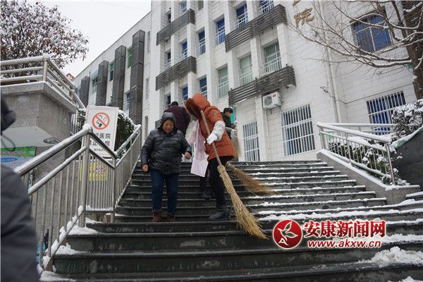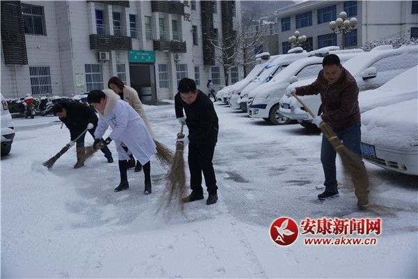 安康新聞網(wǎng)訊(通訊員 杜波兒 楊云波)2018年 1月4日,迎來了新年的第一場大雪,為百姓們帶來美麗雪景的同時也給來院就診的患者帶來諸多不便。當(dāng)你在賞雪景,曬美照時,鎮(zhèn)坪縣醫(yī)院院辦七點多就來到醫(yī)院,組織行政、后勤醫(yī)護人員掃雪除冰,全力保障患者安全就醫(yī),確保醫(yī)療工作的正常運轉(zhuǎn)。
