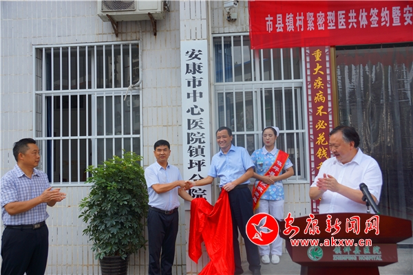 安康新聞網(wǎng)訊(通訊員 杜波兒)鎮(zhèn)坪市縣鎮(zhèn)村緊密型醫(yī)共體簽約暨安康市中心醫(yī)院鎮(zhèn)坪分院掛牌在各級(jí)領(lǐng)導(dǎo)的大力支持下,經(jīng)過(guò)精心籌備,近日在鎮(zhèn)坪縣醫(yī)院正式揭牌成立了。省衛(wèi)計(jì)委健康扶貧辦公室黨辦主任劉善文,市中心醫(yī)院黨委書(shū)記王曉春,副院長(zhǎng)許真,鎮(zhèn)坪縣縣委常委,副縣長(zhǎng)蔡小安,縣醫(yī)改領(lǐng)導(dǎo)小組成員單位,衛(wèi)計(jì)局計(jì)、縣醫(yī)院班子成員及職工、市中心醫(yī)院駐鎮(zhèn)坪對(duì)口幫扶醫(yī)生和各鎮(zhèn)衛(wèi)生院院長(zhǎng)百余人參加了儀式。會(huì)議由鎮(zhèn)坪縣衛(wèi)計(jì)局局長(zhǎng)陳俊才主持。