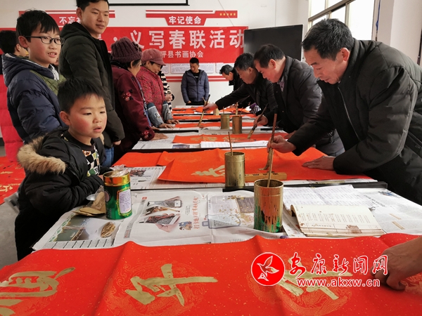 1月13日,鎮(zhèn)坪縣上竹鎮(zhèn)組織開(kāi)展義寫(xiě)春聯(lián)活動(dòng),為廣大群眾免費(fèi)贈(zèng)送春聯(lián)。活動(dòng)現(xiàn)場(chǎng)熱鬧非凡,處處洋溢著濃濃的年味,書(shū)法家們揮毫潑墨,熱情地為群眾書(shū)寫(xiě)著一副副春聯(lián),群眾們滿(mǎn)心歡喜的接過(guò)這些書(shū)法作品,臉上的笑容不自覺(jué)地流露出來(lái)。這些滿(mǎn)載著祝福的春聯(lián),帶著揮別豬年,喜迎鼠年,辭舊迎新的美好祝愿,為即將來(lái)臨的春節(jié)增添了濃濃的節(jié)日氣氛。 (通訊員 黃俊 文/圖)