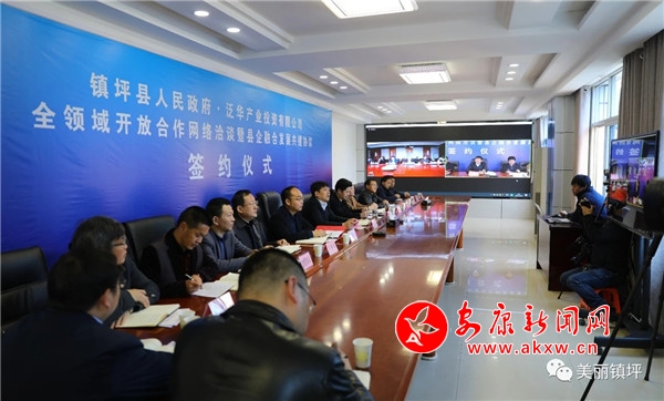 本網訊(通訊員 何丹)為奮力奪取疫情防控與經濟發展“雙勝利”,深入推進開放招商工作,擴大開放水平,增強發展動力。3月20日,鎮坪縣人民政府與泛華產業投資有限公司舉行了全領域開放合作暨縣企融合發展合作共建協議簽約活動?h委副書記、縣長李平和泛華集團董事長楊天舉分別在鎮坪和北京出席視頻洽談,并代表雙方簽約。縣委常委、副縣長涂世昌主持視頻簽約儀式。