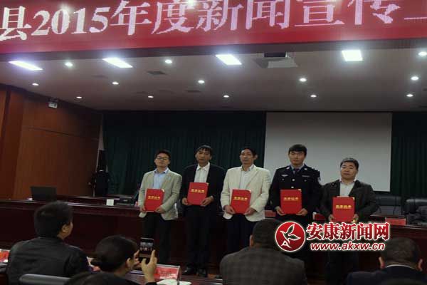 表彰會上,縣政府副縣長賈學勇宣讀了《關于表彰2015年度新聞宣傳工作先進單位、優秀新聞工作者和優秀通訊員的決定》,授予縣公安局等7個單位“紫陽縣2015年度新聞宣傳工作先進單位”;授予汪可平等5名同志“紫陽縣2015年度優秀新聞工作者”;授予肖寶等10名同志“紫陽縣2015年度優秀通訊員”。并對以上的先進單位和優秀個人進行了表彰獎勵。
