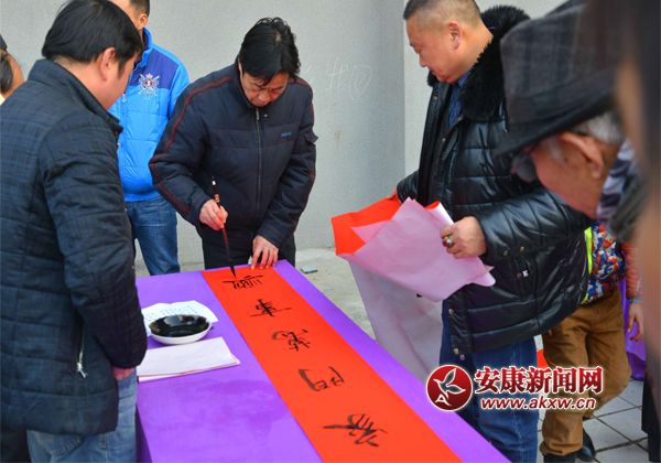 在廣場入口處,4名中青年書作者正揮毫潑墨,為居民義寫春聯。“喜居寶地千年旺,福照家門萬事興”,一位社區居民從書畫家趙剛華手中接過春聯,小心翼翼地攤晾在平地上。據統計,當天共為居民書寫春聯300余副。