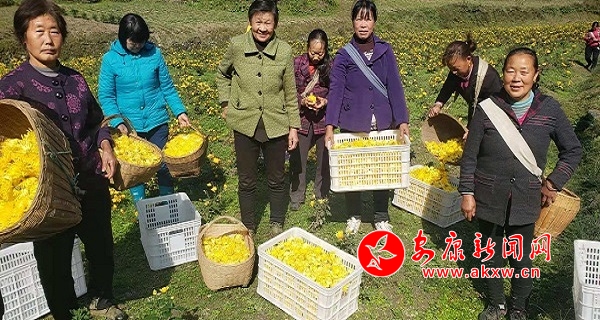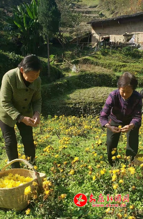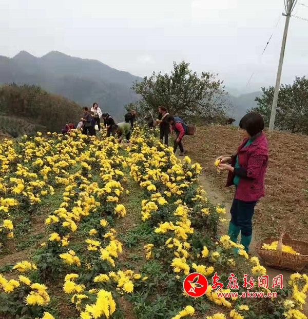 初冬季節,正是金絲黃菊盛開采摘的季節。紫陽縣蒿坪鎮王家河村百畝菊花盛開,成為一道亮麗的風景。也是該村作為鞏固提升脫貧成果,增加農民收入的一項新型產業,為農民穩定增收找到了新的就業門路。(陳道廣 攝)Xi2安康新聞網