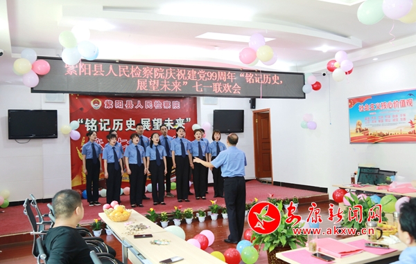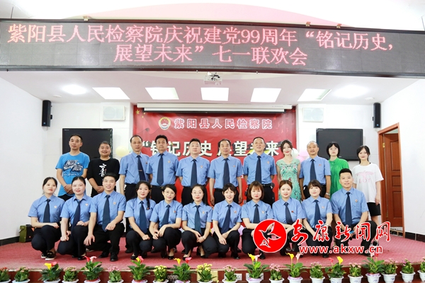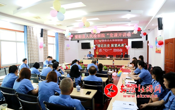 本網訊 (通訊員 汪濤)6月29日,安康市紫陽縣人民檢察院六樓會議室張燈結彩氣氛熱烈。為慶祝中國共產黨成立99周年,該院開展了“慶祝建黨99周年暨優秀黨員表彰大會”“黨課開講啦”“銘記歷史 展望未來”文藝聯歡活動。