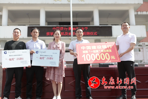 本網訊 (通訊員 劉成軍)金秋送爽,丹桂飄香。9月18日下午,由中國建行向紫陽縣高橋鎮初級中學捐贈的教學一體機及音樂教室設施設備的捐贈儀式在該校操場舉行,紫陽縣縣委常委、副縣長張雪峰出席捐贈儀式,麗姐助學負責人孫麗、鎮相關領導及高橋中學全體師生參與活動。