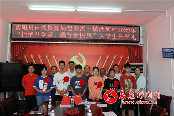 活動后該局聯(lián)合漢王鎮(zhèn)政府、村黨支部,以“拒絕升學(xué)宴、踐行新民風(fēng)”為主題開展“主題黨日”活動,為西河村準(zhǔn)6名大學(xué)生舉辦集體升學(xué)禮,該活動得到了陜西核工業(yè)工程勘察院有限公司和紫陽縣凱翔建筑工程有限公司共計2萬元愛心捐助,主要用于特殊家庭幫扶、新入學(xué)大學(xué)生獎勵和西河村人居環(huán)境整治改善。通過多途徑、多形式解決群眾“急、難、愁、盼”問題,共同助力鄉(xiāng)村振興工作。