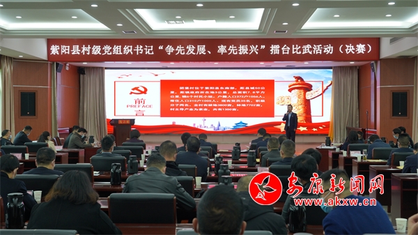 組織搭臺鳴戰鼓。為實現村(社區)黨組織書記“擂臺比武”全覆蓋,紫陽縣委組織部制定印發《關于開展農村黨組織書記“爭先發展、率先振興”擂臺比武活動的通知》,以建設黨建強、發展強,產業優、生態優、治理優、文化優“四優雙強”村級黨組織為目標,搭建縣鎮兩級“擂臺”,通過“經驗講述+知識競賽+現場觀摩”的形式開展“比武”,鎮級“擂臺比武”由各鎮黨委組織,評選出的鎮級“擂主”作為縣級決賽的參賽選手。