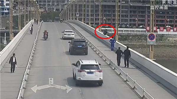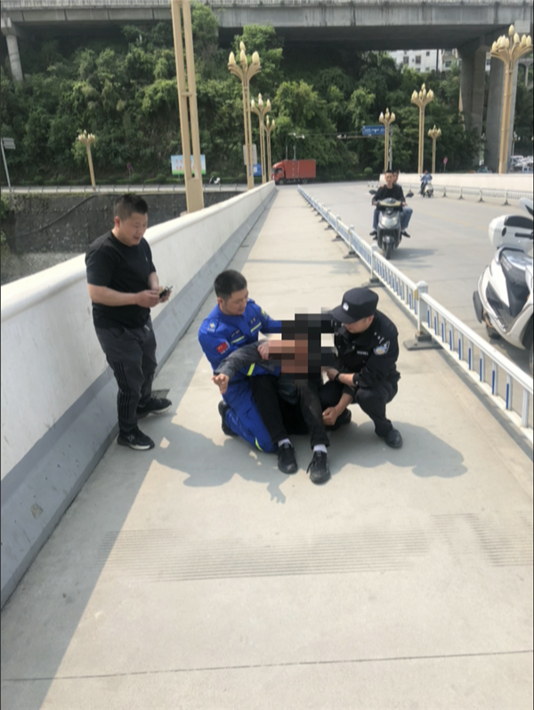 紫陽(yáng)縣統(tǒng)計(jì)局干部、退役軍人吳勇騎車辦事途中路過(guò)大橋,正好注意到該男子。此時(shí)男子身體前傾,搖搖欲墜,為了不刺激到該男子,情急之下吳勇急中生智,他先在遠(yuǎn)處將車靠邊停下,裝作路過(guò)慢慢向其靠近,待走到男子身旁后假裝借用打火機(jī),分散注意力,趁男子放下防備時(shí),吳勇一個(gè)箭步,雙手抱住男子將他從橋上拉回,害怕男子再次做出不理智的行為,在將男子拉回后吳勇仍緊緊抱著男子不敢放手。
