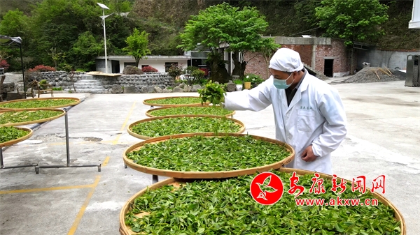 4月28日,紫陽壹封天葉茶業有限公司技術人員正在對采摘回來的古茶樹鮮葉進行攤晾。通訊員 儲茂銀攝