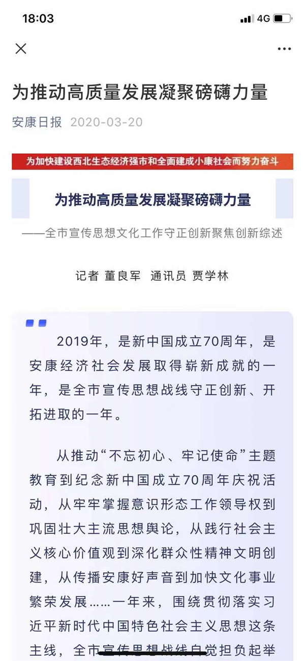 安康新聞網(wǎng)堅持以習(xí)近平新時代中國特色社會主義思想為指導(dǎo),深入學(xué)習(xí)貫徹習(xí)近平總書記關(guān)于新聞輿論工作的重要論述和習(xí)近平總書記來陜來安考察重要講話、對陜西日報創(chuàng)刊80周年重要指示精神,增強“四個意識”,堅定“四個自信”,做到“兩個維護”,緊緊圍繞舉旗幟、聚民心、育新人、興文化、展形象的使命任務(wù),不斷增強“四力”,弘揚正能量,傳播好聲音,為奮力譜寫安康新時代追趕超越新篇章營造良好的輿論氛圍。