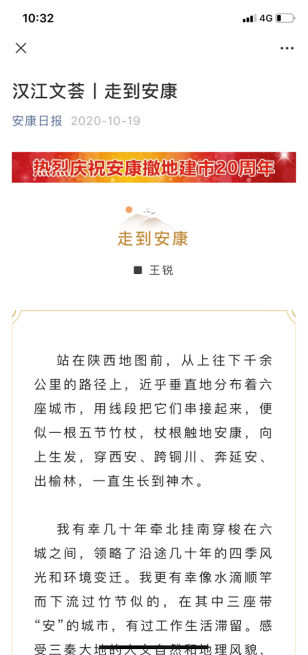 網(wǎng)站開設(shè)網(wǎng)絡(luò)中國節(jié)多個傳統(tǒng)節(jié)日專題,根據(jù)節(jié)點設(shè)計發(fā)布海報、H5。安康日報微信公眾號新增文化型品牌欄目《漢江文薈》,挖掘安康本土傳統(tǒng)文化,展現(xiàn)地方特色,形象化、脈絡(luò)化宣傳報道“漢江龍舟節(jié)”、漢調(diào)二黃、安康傳統(tǒng)年畫、版畫、名鎮(zhèn)街區(qū)、“非遺”符號等優(yōu)秀傳統(tǒng)文化精髓。