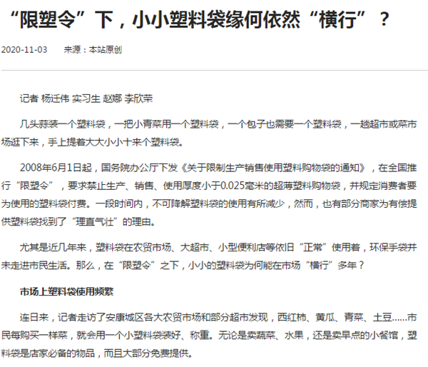 安康新聞網(wǎng)積極履行媒體輿論監(jiān)督職能,開設(shè)有“曝光臺”欄目,主要刊發(fā)市紀(jì)委通報的典型問題。2020年,聚焦民生問題,刊發(fā)了《出門停車難,回家車位貴——安康中心城區(qū)物業(yè)小區(qū)停車問題調(diào)查》《“限塑令”下,小小塑料袋緣何依然“橫行”?》《健康就餐:我市推行“分餐制”進展調(diào)查》《電動車充電,何時才能不“飛線”?》等一批原創(chuàng)新聞,反映群眾呼聲,積極推進問題解決,體現(xiàn)地方黨媒的責(zé)任與擔(dān)當(dāng)。