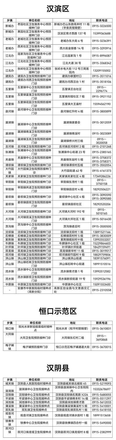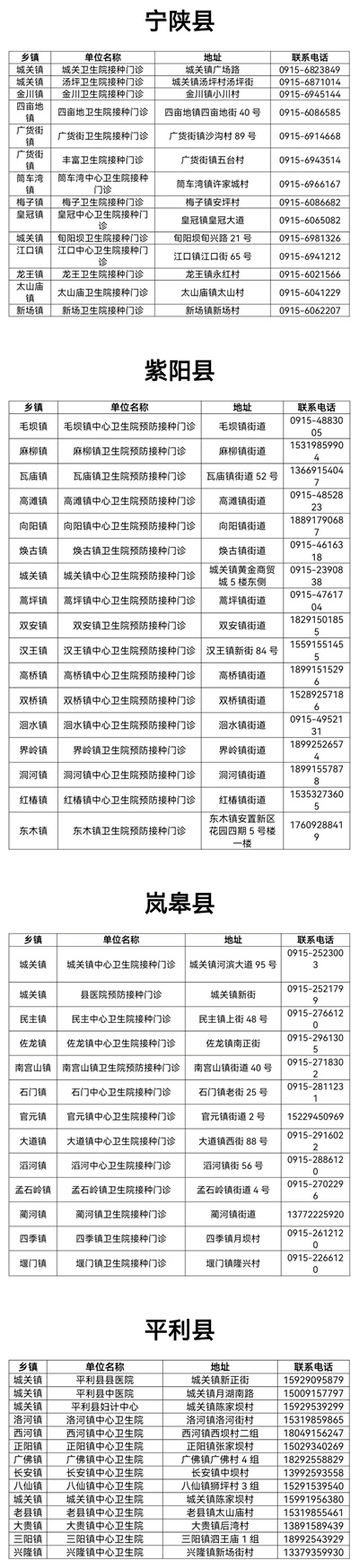 答:目前安康各鄉鎮、社區預防接種門診均可接種新冠疫苗,具體接種點位附后。